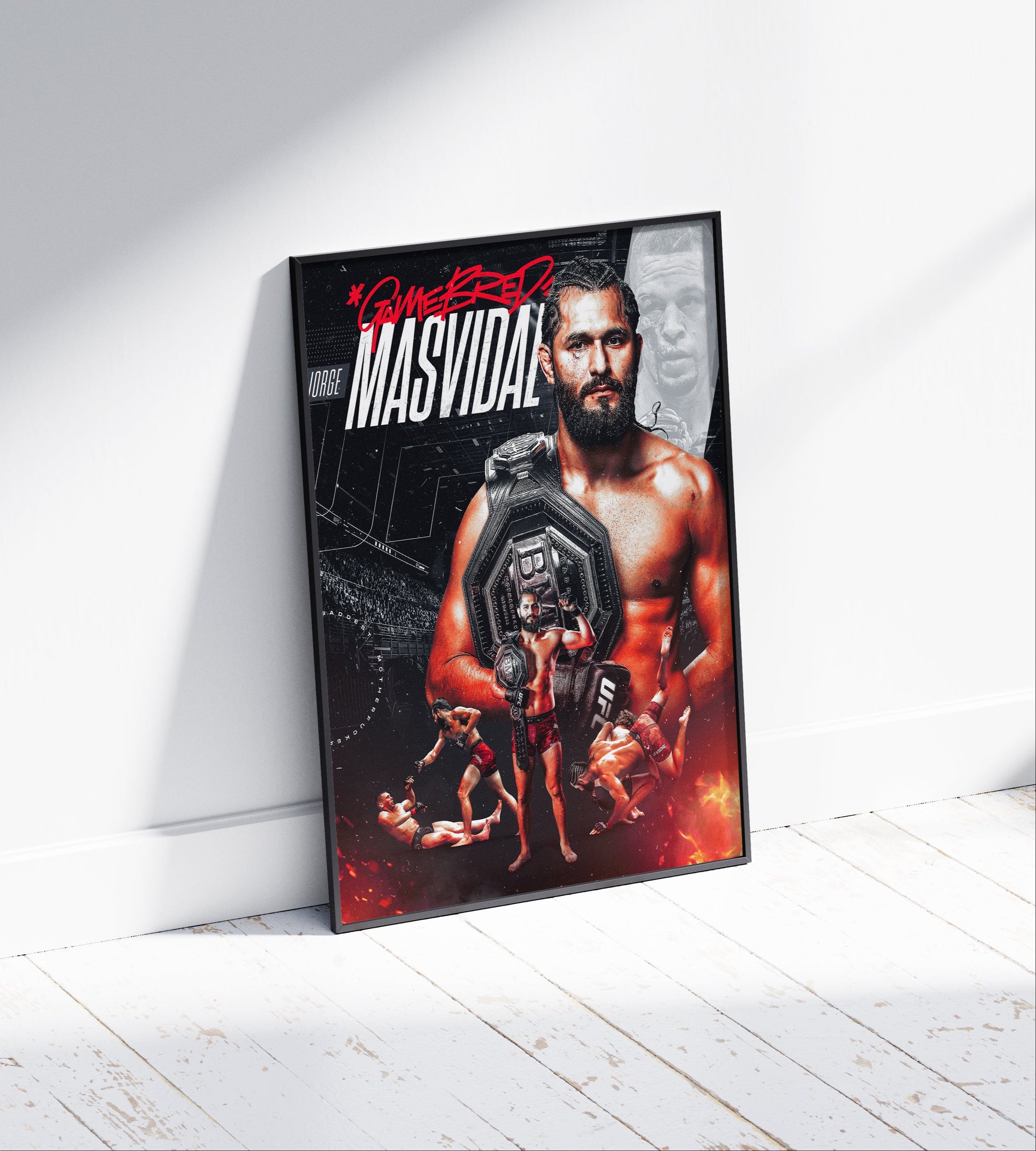 Celebrate the dynamic fighting spirit of Jorge Masvidal with this expertly crafted poster. Printed on high-quality material, it captures his intensity and charisma in vivid detail, making it a perfect addition for any MMA fan’s collection. Whether displayed in a gym, office, or living space, this poster inspires determination and passion, reflecting Masvidal’s status as a true combat sports icon.