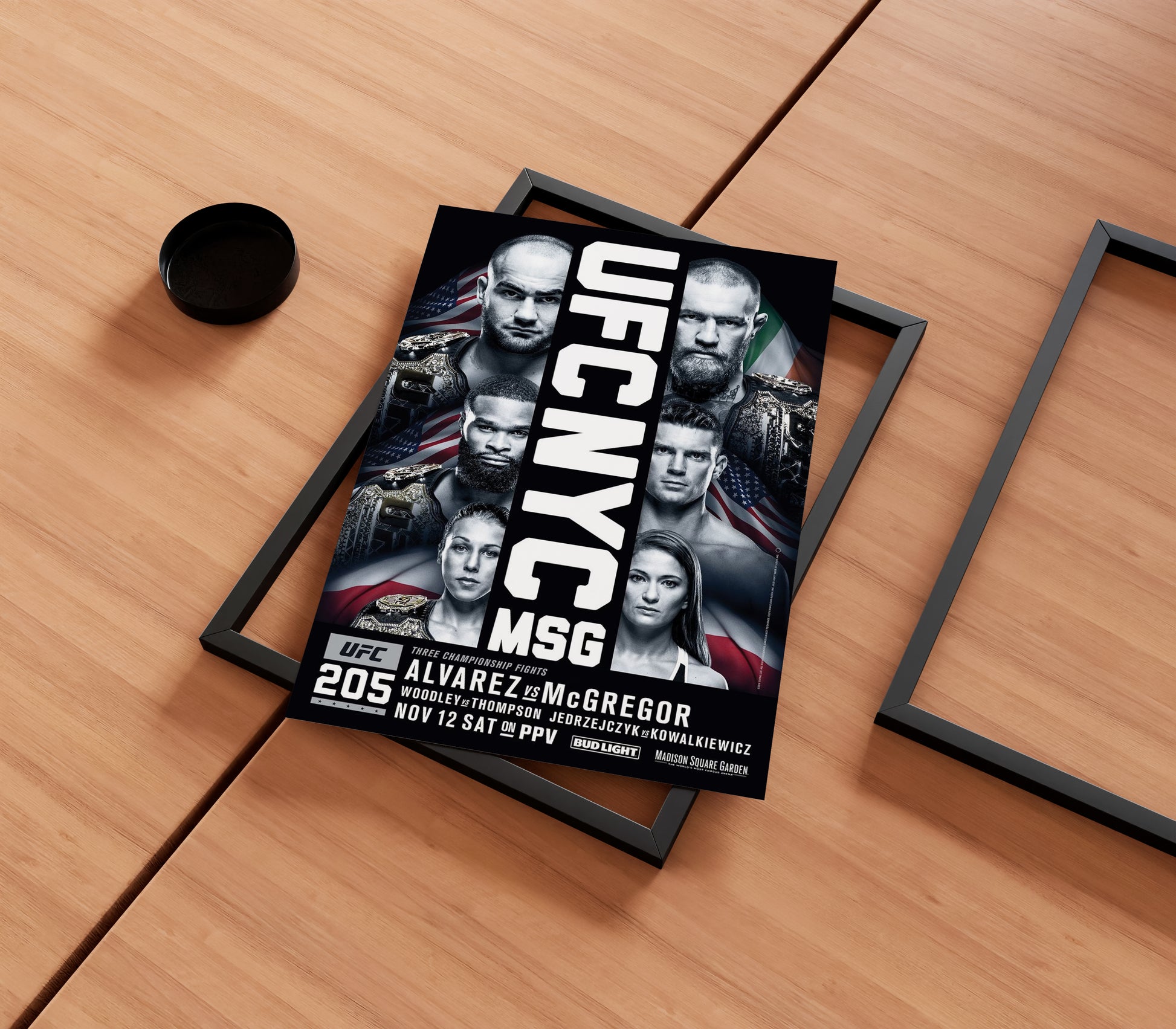 Celebrate one of the UFC’s most iconic moments with this UFC 205 'Conor McGregor Vs Eddie Alvarez' poster. Capturing the intensity and historic significance of McGregor’s lightweight title win, this high-quality print offers a dynamic tribute for any fight fan. Ideal for collectors and enthusiasts, it adds a powerful statement to your space while honoring a defining event in mixed martial arts history.